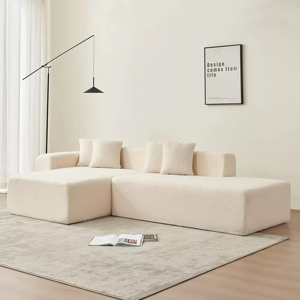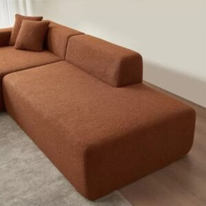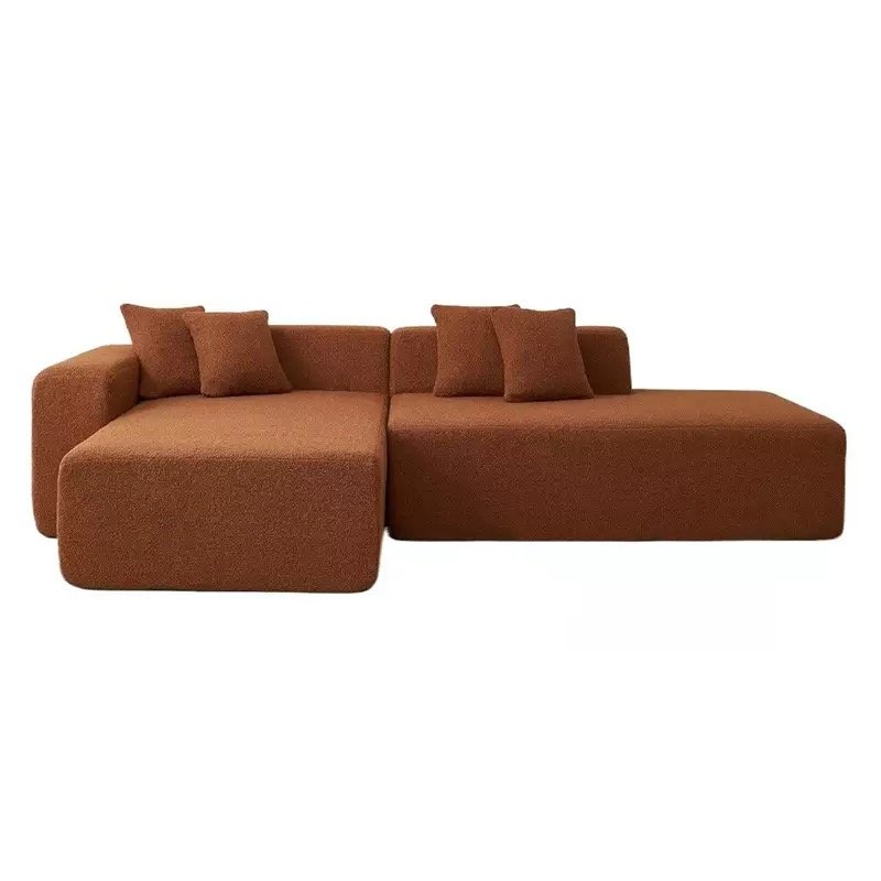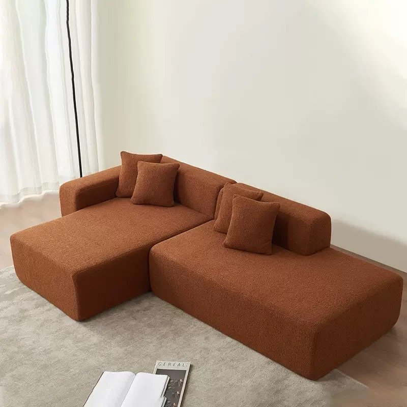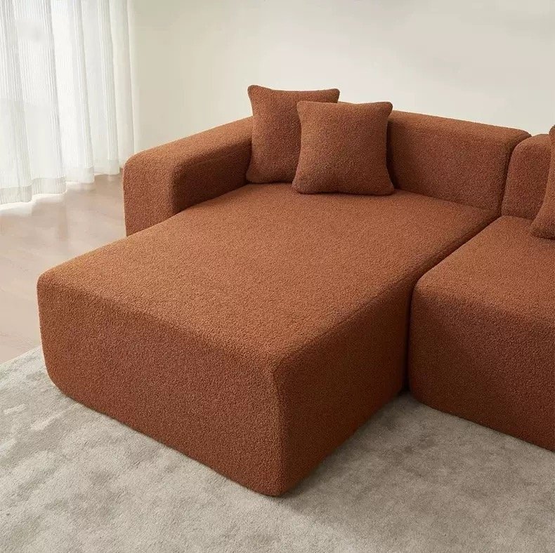 This sofa is based on a minimalist block as its core design language. It has a soft and skin-friendly texture, and the overall lines are sleek and clean. The armless modular design can be freely combined, suitable for different floor plans and scenarios. Whether it is an L-shaped extension or parallel placement, it can easily create a personalized sense of relaxation. Two color options of light beige and caramel are available. The gentle texture and the clean lines collide to create a unique aesthetic of wabi-sabi style, infusing the living room with a lazy yet sophisticated atmosphere.