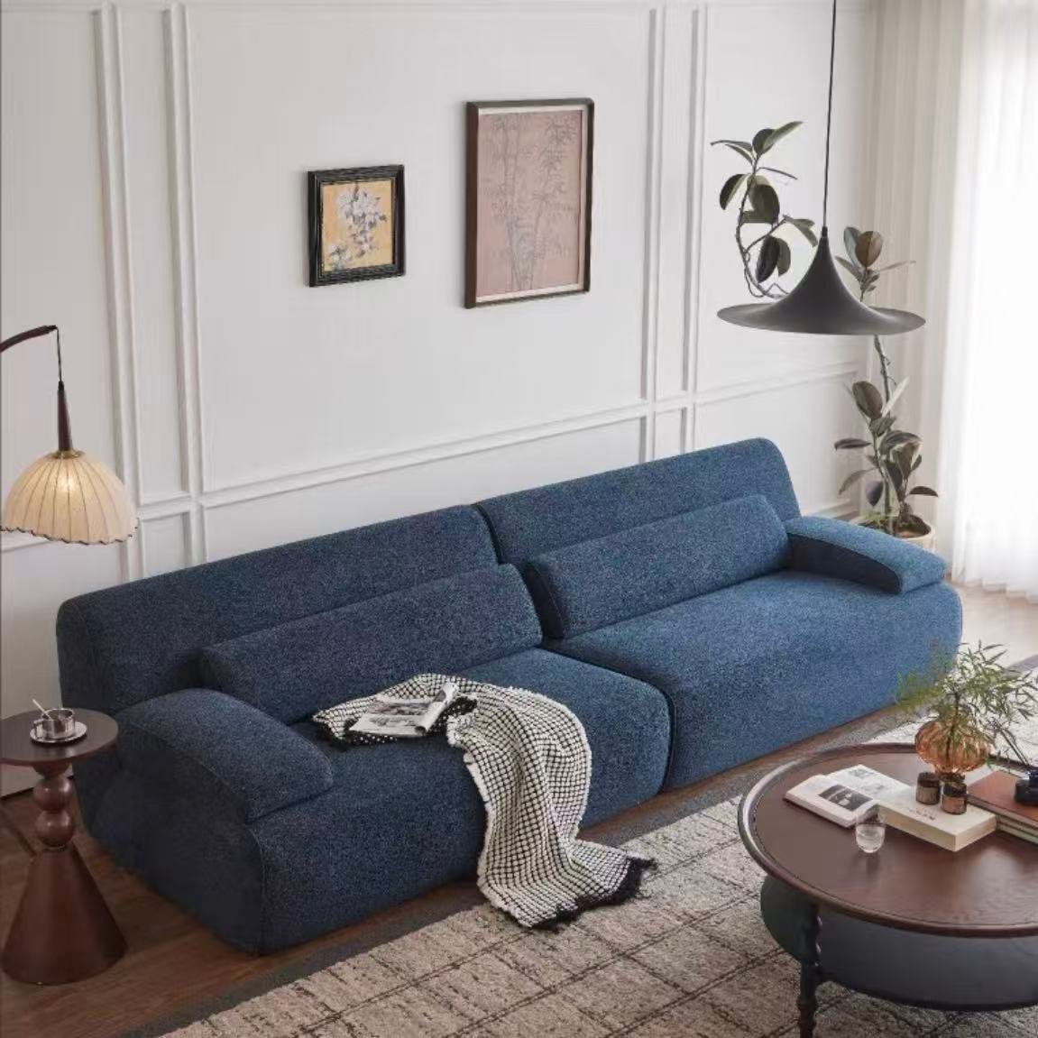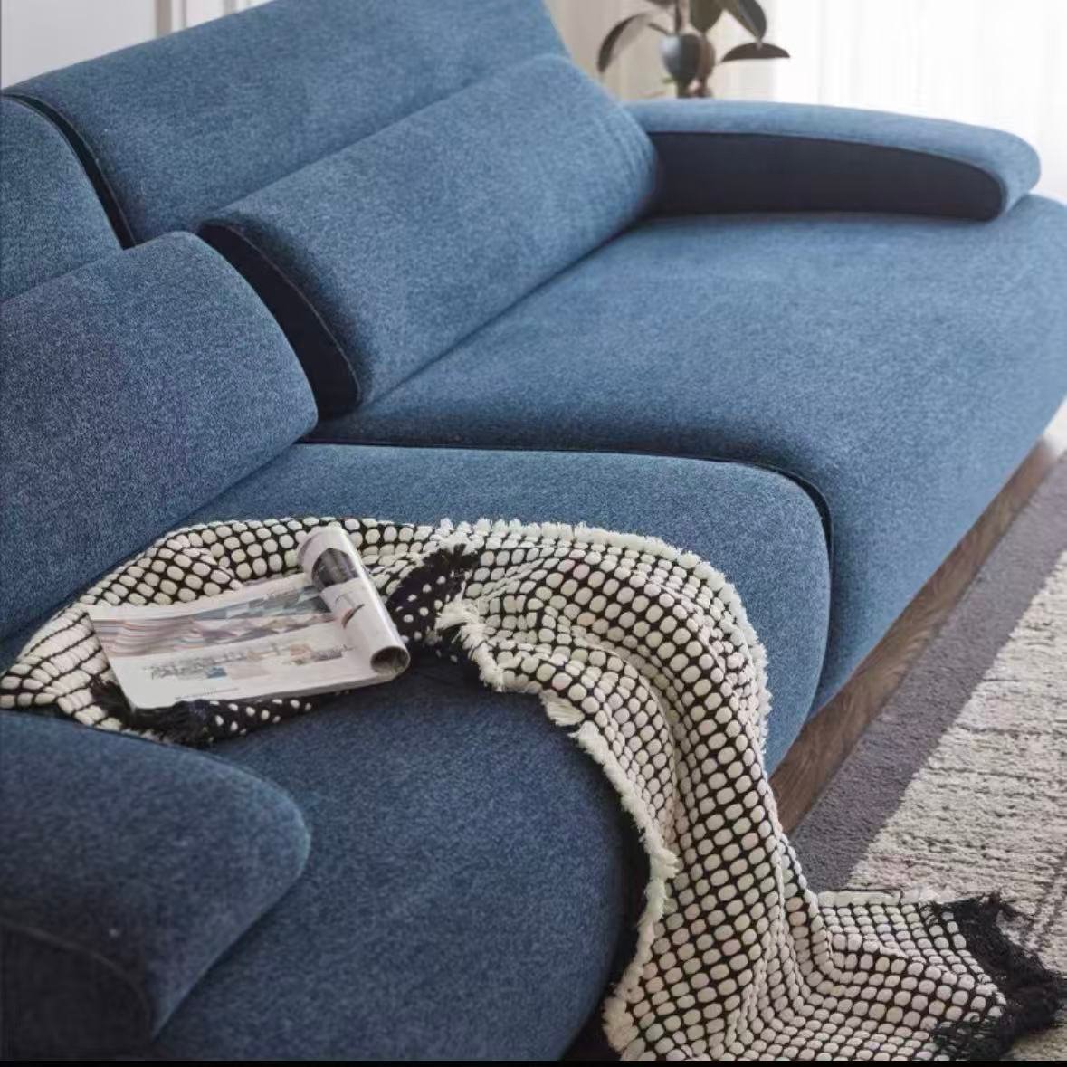 The moment your body sinks into this sofa, you will understand what it means to be “embraced by the clouds” and relax. It takes Italian minimalism as its backbone and modular design as its soul. The deep blue skin-friendly and soft fabric wraps around every inch of the skin. Whether you are lying lazily inside watching TV series or sitting freely with your family, it can precisely support the curves of your body and relieve all fatigue.