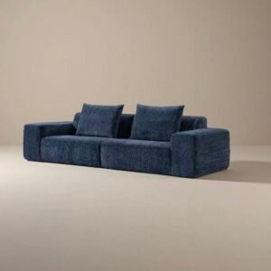 The “Deep Sea Blue Modular Sofa” defines the texture and relaxation boundaries of urban home furnishings