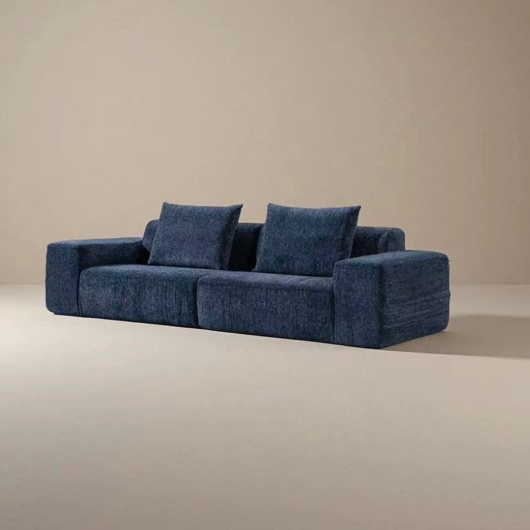 Amidst the hustle and bustle of the city, you need a textured corner that can carry all your emotions. This deep sea blue modular sofa, with its color and texture brimming with a sense of luxury, redefines the light luxury atmosphere of the home. The minimalist square design blends retro and modern aesthetics, making it suitable for a variety of home decoration styles such as Italian and minimalist. Every time you sit down, it is a gentle relief from fatigue, turning the home into an artistic showcase that showcases your taste.